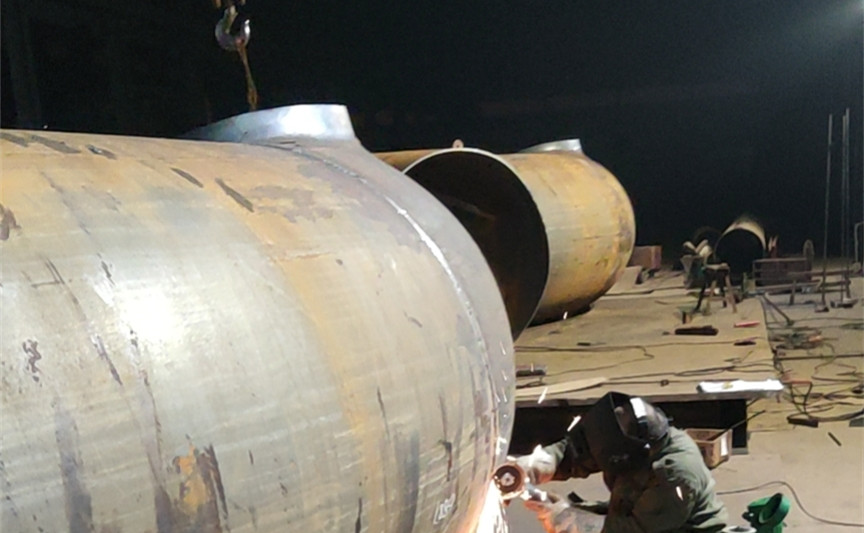 岳筑宣2020.12.12日訊:由我公司承接的中國石油化工股份有限公司長嶺分公司1#催化裝置反再系統隱患改造項目同軸式沉降器---再生器煙氣集合管;時間緊,制造難度大。